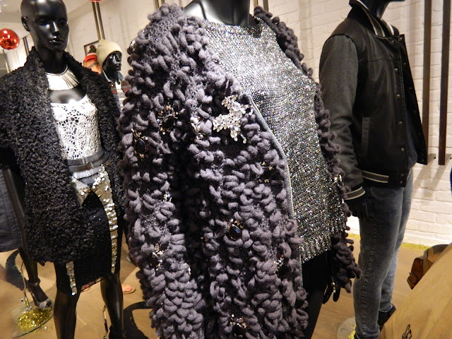 Navy Stripe Embellished Jack - (£65.00) / Beige Contrast Shirt (£35.00) / Black Chain Jacket - (£65.00) LOVE! / Silver Tweed Skirt - (£30.00) / Black PU Panelled Skater Dress - (£32.00) / Grey Encrusted Alice Band - (£12.00) / Cream Lace Blouse - (£35.00)
